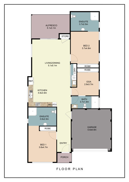 Featuring two generously sized bedrooms, plus an OOD (On-site Overnight Dwelling) SDA house, designed to provide a comfortable living environment with ample space for both residents and support staff.