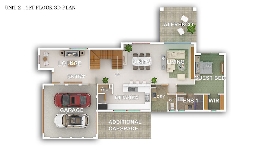 • Ground floor: separate lounge room, dining room, kitchen, living room, large alfresco, self-contained room, laundry area & garage