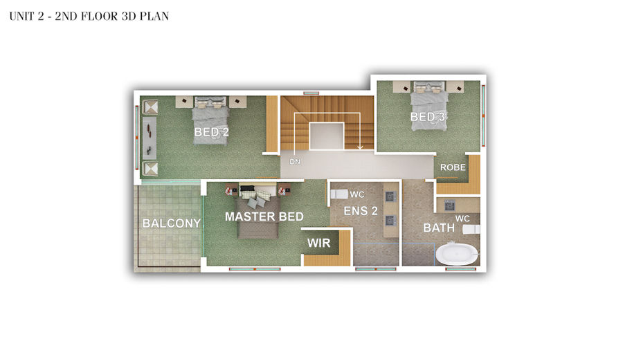 • Upper floor: 3 bedrooms + 2 bathrooms + 1 Balcony